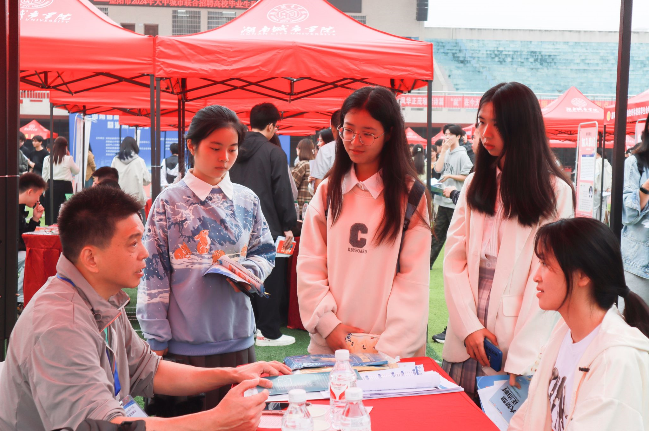 本网讯(通讯员 朱怡 冷紫怡)10月17日,湖南省高校毕业生就业区域性行业性常设市场(益阳片区)暨万象城手机网页版登录入口2025届毕业生秋季综合双选会在东田径场举行。校长何振、党委副书记袁志成来到现场指导就业工作。